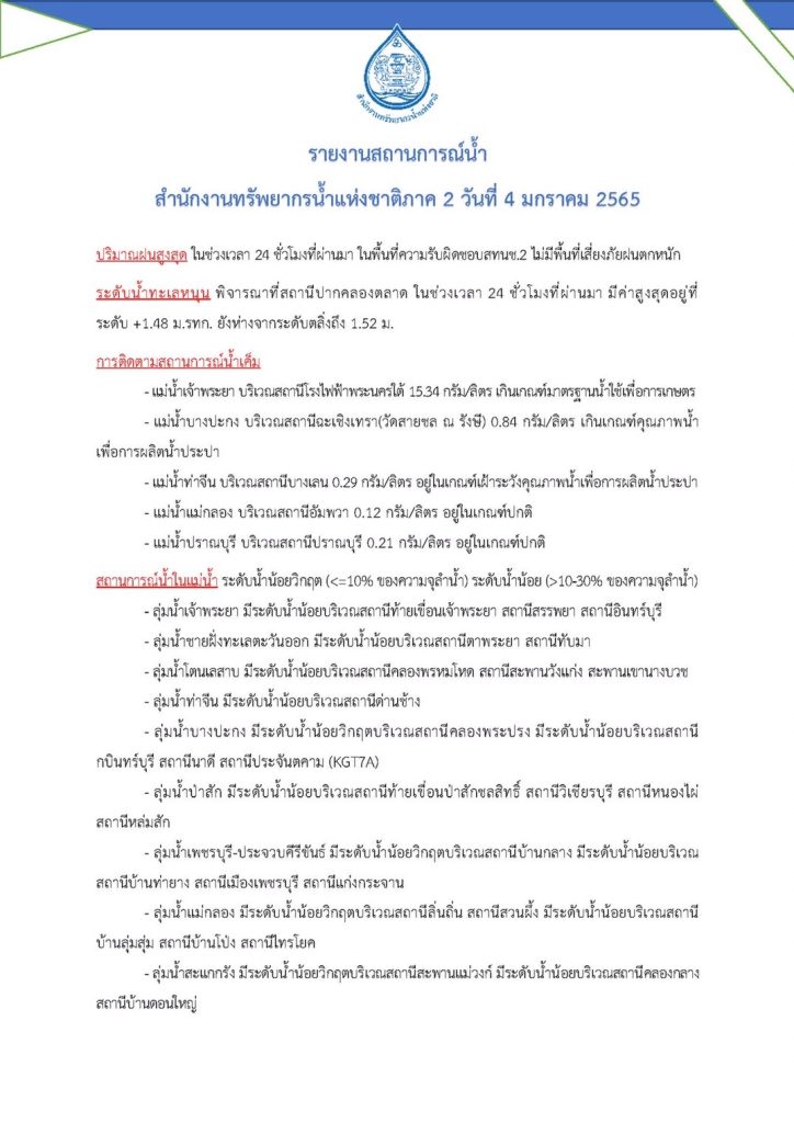 รายงานสถานการณ์น้ำ วันที่ 4 มกราคม 2565