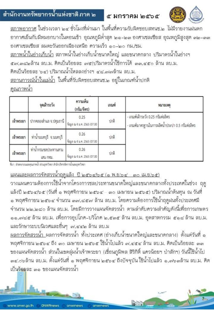 รายงานสถานการณ์น้ำ วันที่ 5 มกราคม 2565