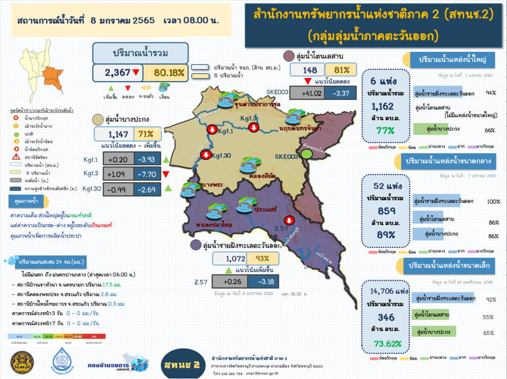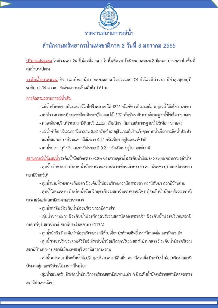 รายงานสถานการณ์น้ำ วันที่ 8 มกราคม 2565
