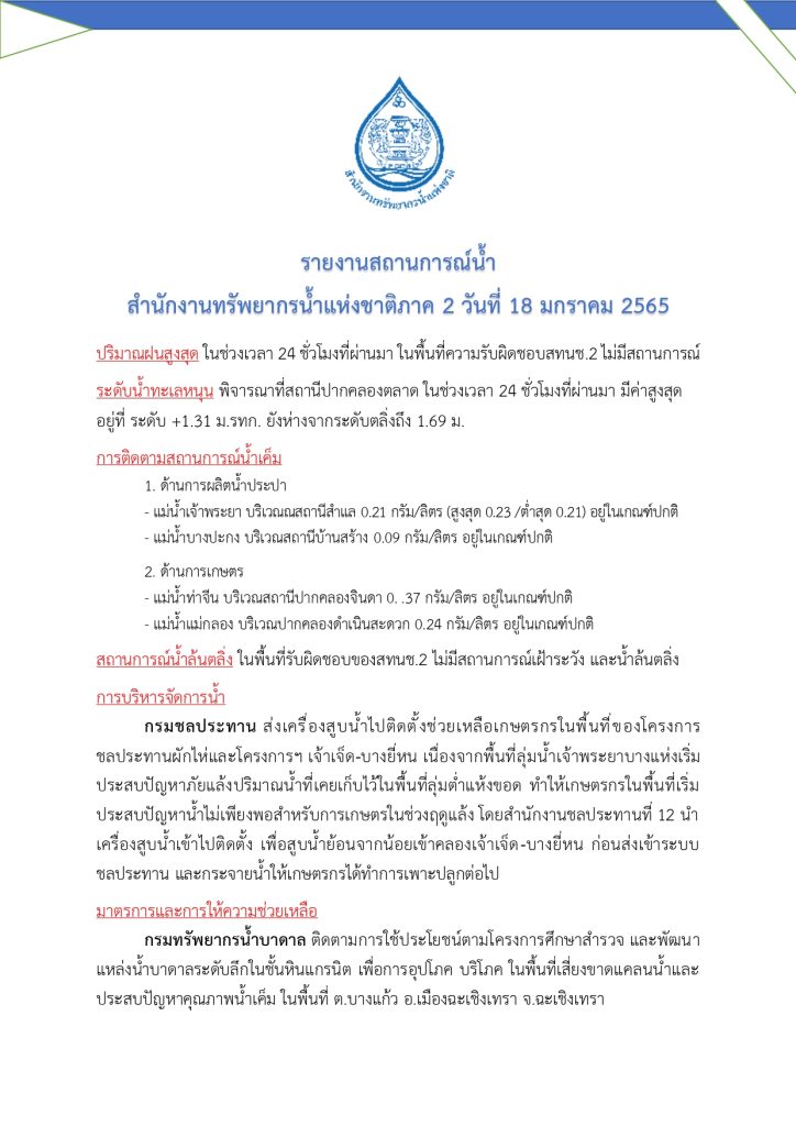 รายงานสถานการณ์น้ำ วันที่ 18 มกราคม 2565