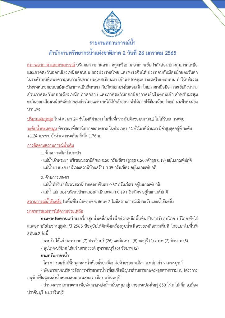รายงานสถานการณ์น้ำ วันที่ 26 มกราคม 2565