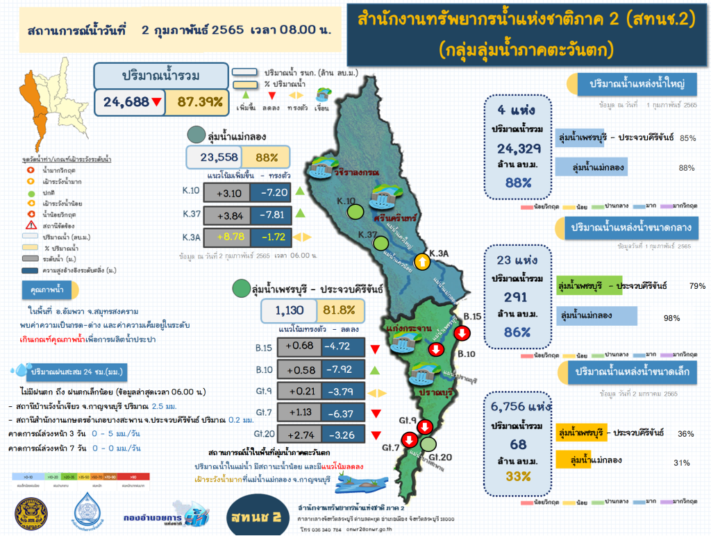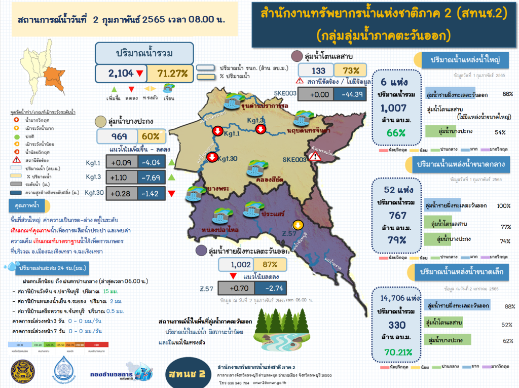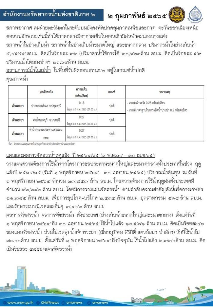 รายงานสถานการณ์น้ำ วันที่ 2 กุมภาพันธ์ 2565