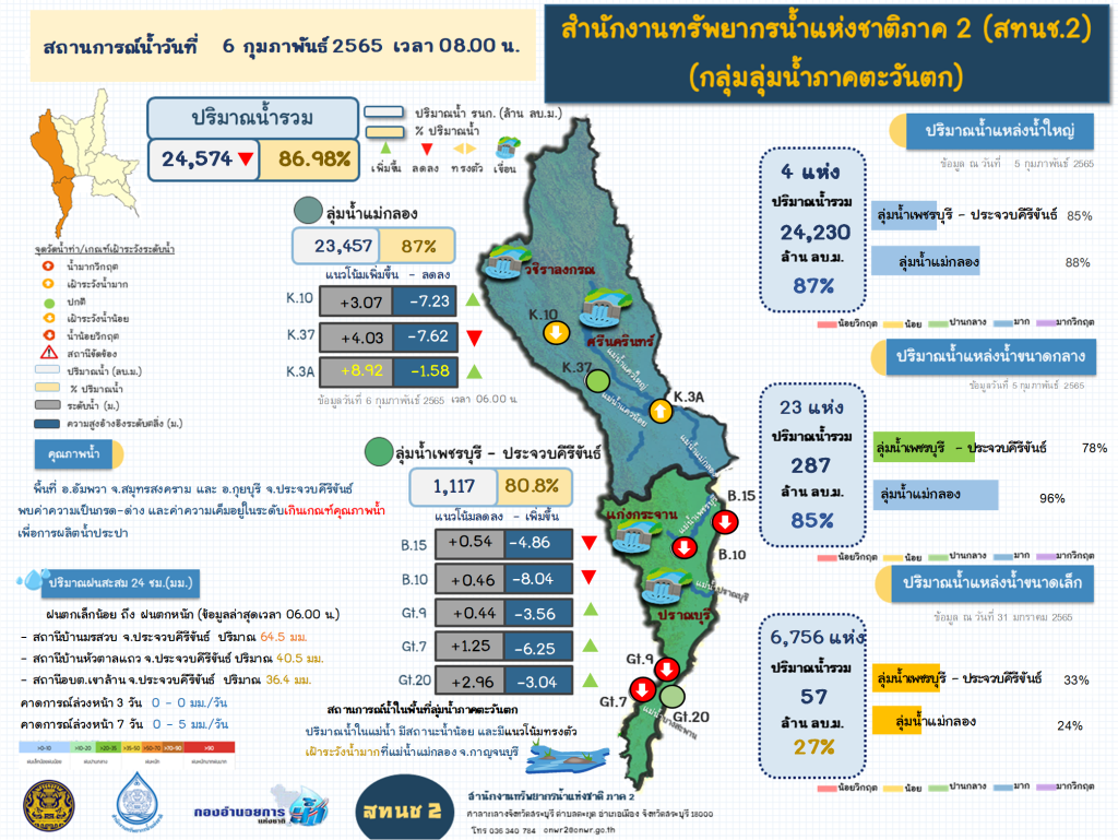 รายงานสถานการณ์น้ำ วันที่ 6 กุมภาพันธ์ 2565