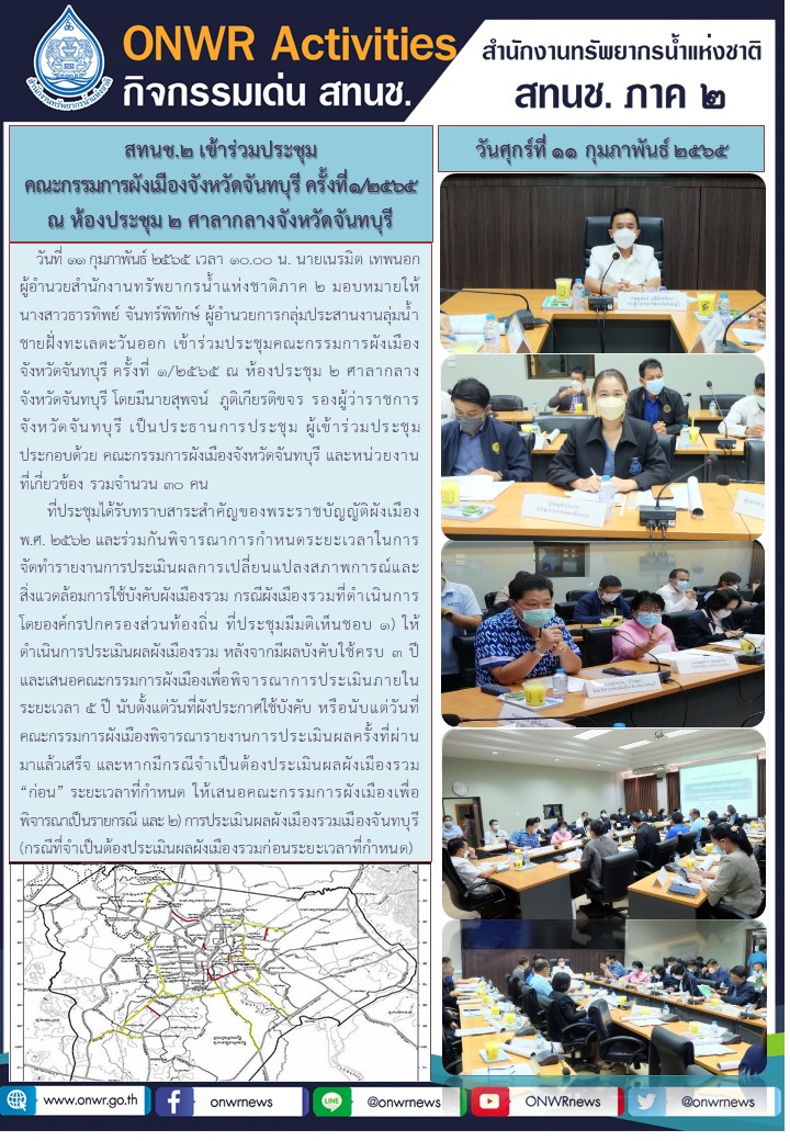 สทนช.2 เข้าร่วมประชุมคณะกรรมการผังเมืองจังหวัดจันทบุรี ครั้งที่1/2565 12 กุมภาพันธ์ 2022 by ชลธิชา เมฆนิล