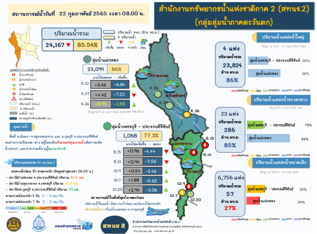 รายงานสถานการณ์น้ำ วันที่ 22 กุมภาพันธ์ 2565