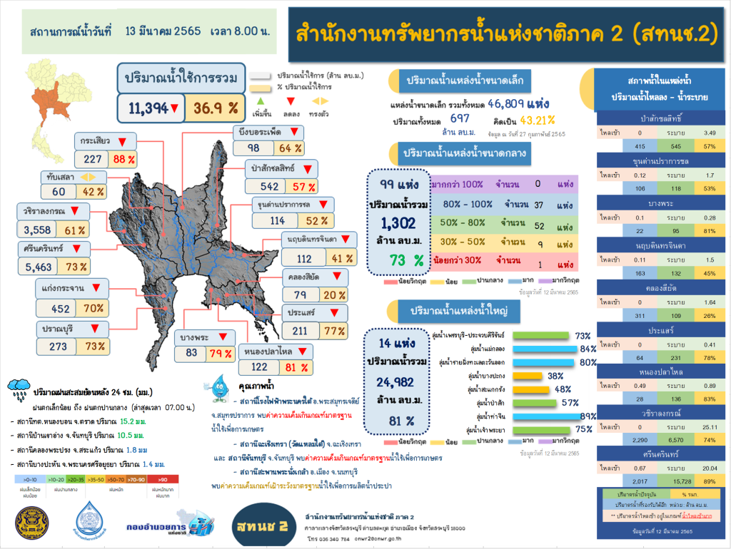 รายงานสถานการณ์น้ำ วันที่ 13 มีนาคม 2565
