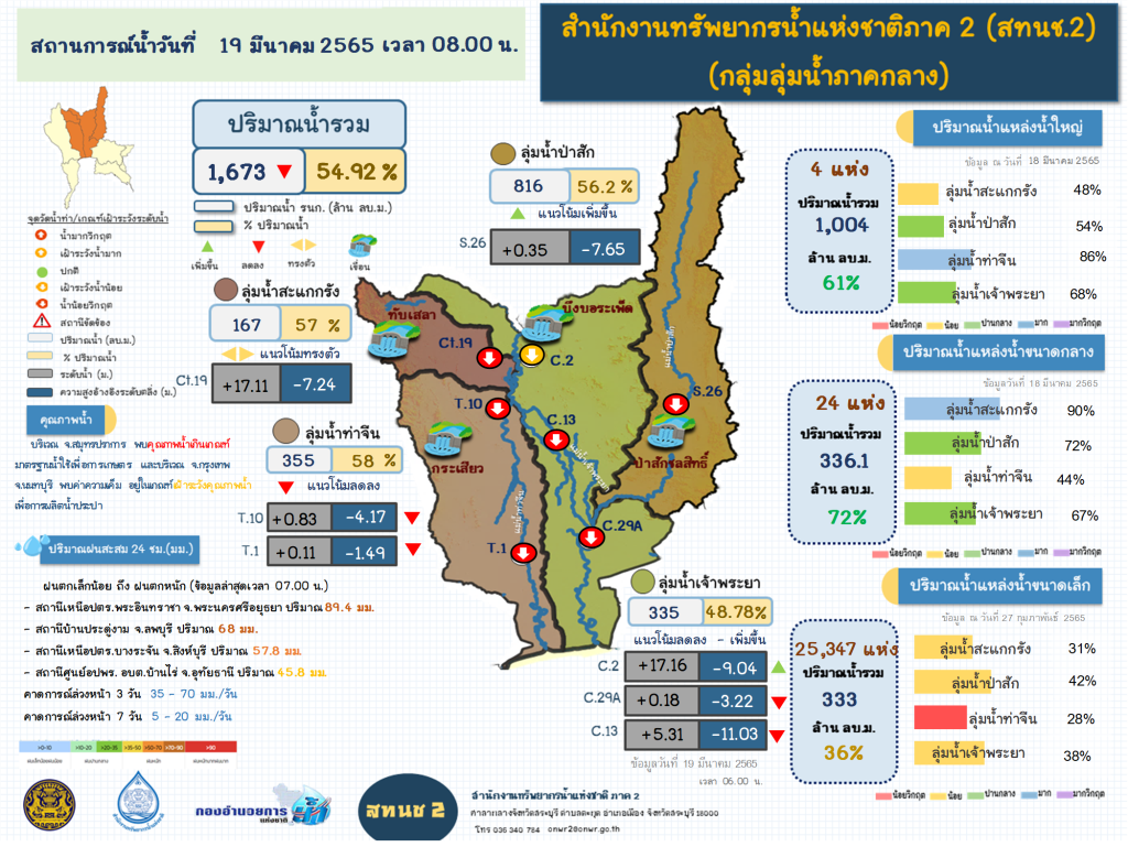 รายงานสถานการณ์น้ำ วันที่ 19 มีนาคม 2565
