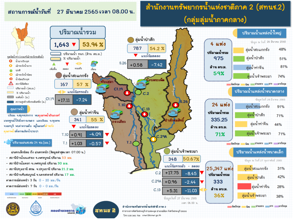 รายงานสถานการณ์น้ำ วันที่ 27 มีนาคม 2565