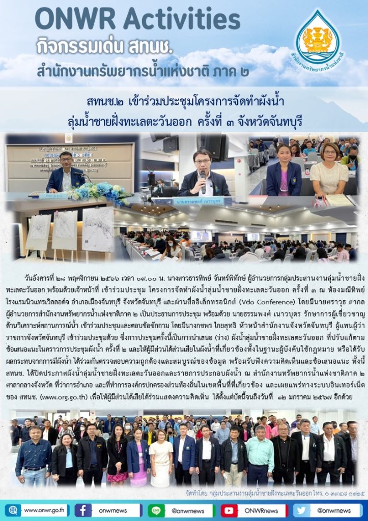 สทนช.2 เข้าร่วมประชุมโครงการจัดทำผังน้ำ ลุ่มน้ำชายฝั่งทะเลตะวันออก ครั้งที่ 3 จังหวัดจันทบุรี 29 พฤศจิกายน 2023 by ปวีณา ประกอบพันธ์