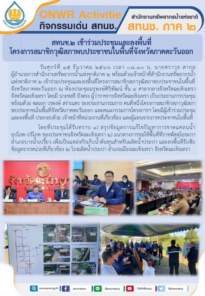 สทนช.2 เข้าร่วมประชุมและลงพื้นที่โครงการสมาชิกวุฒิสภาพพบประชาชมในพื้นที่จังหวัดภาคตะวันออก 18 ธันวาคม 2023 by ปวีณา ประกอบพันธ์