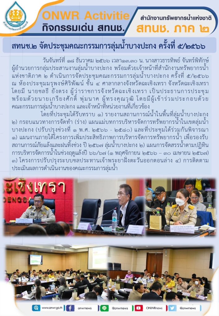สทนช.2 จัดประชุมคณะกรรมการลุ่มน้ำบางประกง ครั้งที่ 5/2566