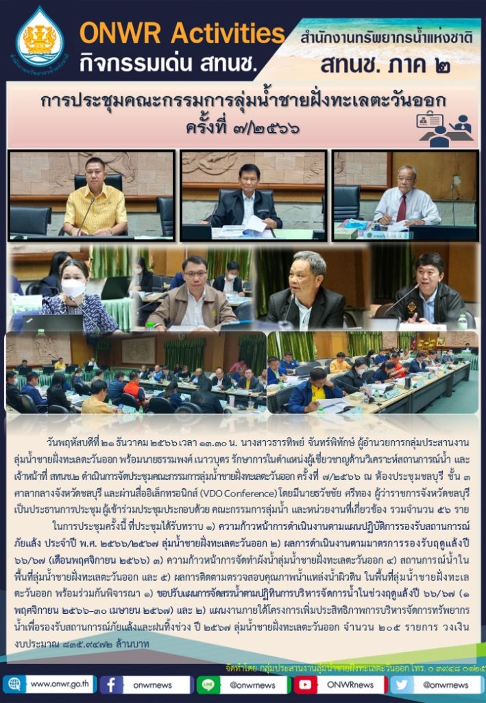 สทนช.2 จัดการประชุมคณะกรรมการลุ่มน้ำชายฝั่งทะเลตะวันออก ครั้งที่ 7/2566 25 ธันวาคม 2023 by ปวีณา ประกอบพันธ์