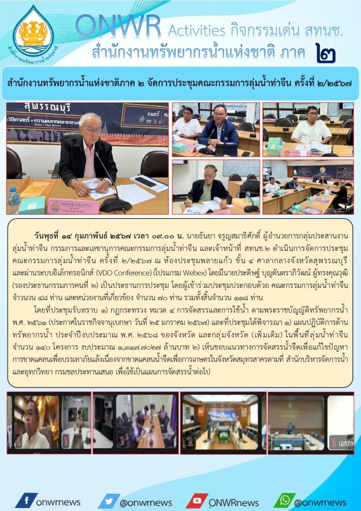 สทนช.2 เข้าร่วมประชุมคณะกรรมการลุ่มน้ำท่าจีน ครั้งที่ 2/2567