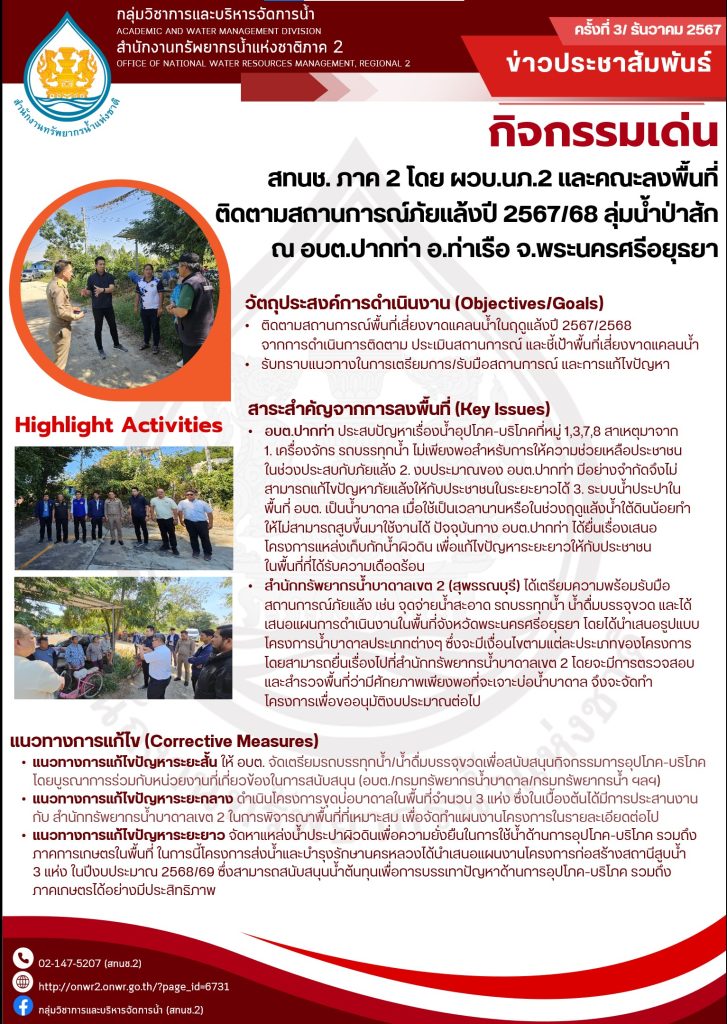 สทนช.2 โดย ผวบ.นภ.2 และคณะลงพื้นที่ติดตามสถานการณ์ภัยแล้งปี 2567/68 ลุ่มน้ำป่าสัก ณ อบต.ปากท่า อ.ท่าเรือ จ.พระนครศรีอยุธยา 17 ธันวาคม 2024 by ปวีณา ประกอบพันธ์