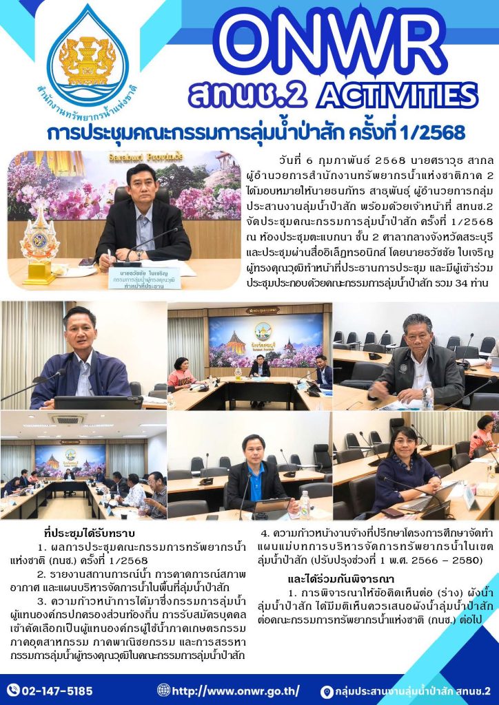 สทนช. 2 ประชุมคณะกรรมการลุ่มน้ำป่าสัก ครั้งที่1/2568