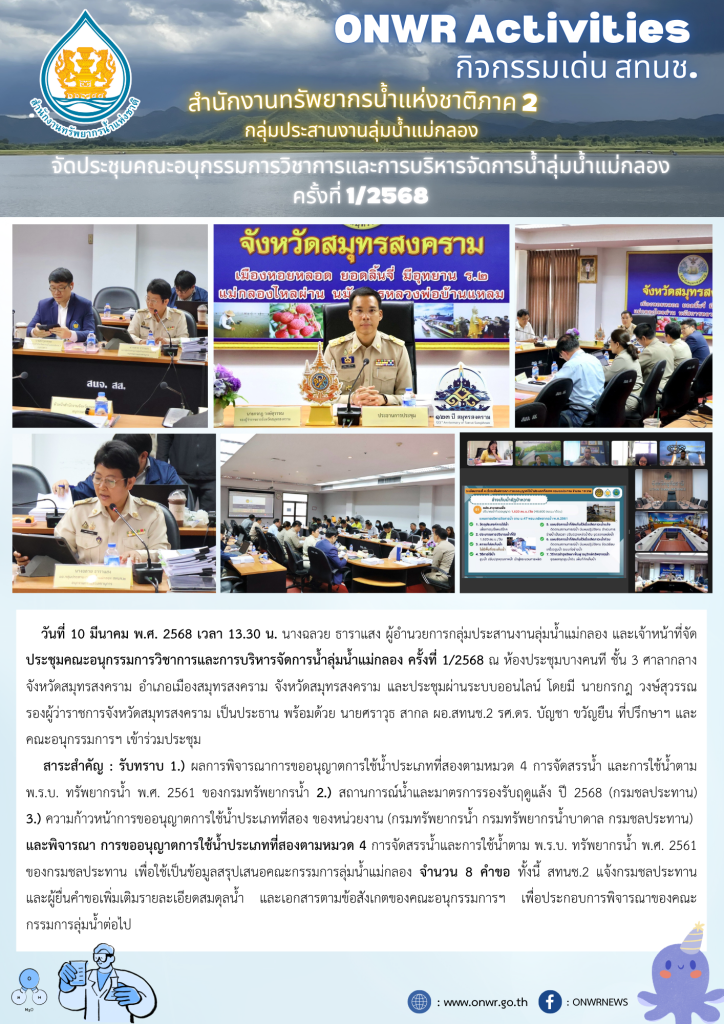 สทนช.2จัดประชุมคณะกรรมการวิชาการและการบริหารจัดการลุ่มน้ำแม่กลองครั้งที่1/2568 12 มีนาคม 2025 by ปวีณา ประกอบพันธ์