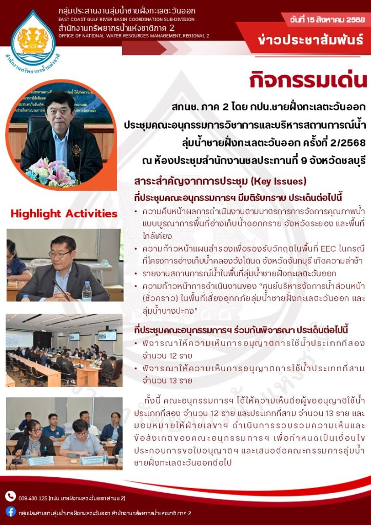 สทนช.2 จัดประชุมคณะอนุกรรมการวิชาการและบริหารสถานการณืน้ำลุ่มน้ำชายฝั่งทะเลตะวันออก ครั้งที่2/2568 จ.ชลบุรี 19 สิงหาคม 2025 by ปวีณา ประกอบพันธ์