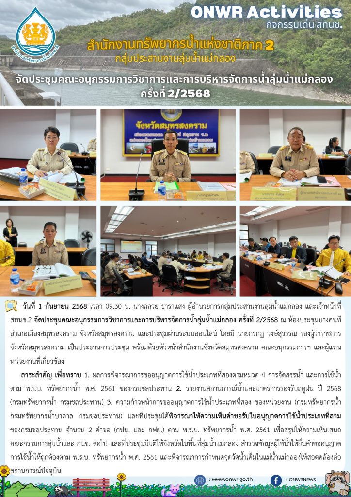 สทนช.2 จัดประชุมคณะอนุกรรมการวิชาการและการบริหารจัดการน้ำลุ่มน้ำแม่กลอง ครั้งที่ 2/2568 3 กันยายน 2025 by ปวีณา ประกอบพันธ์