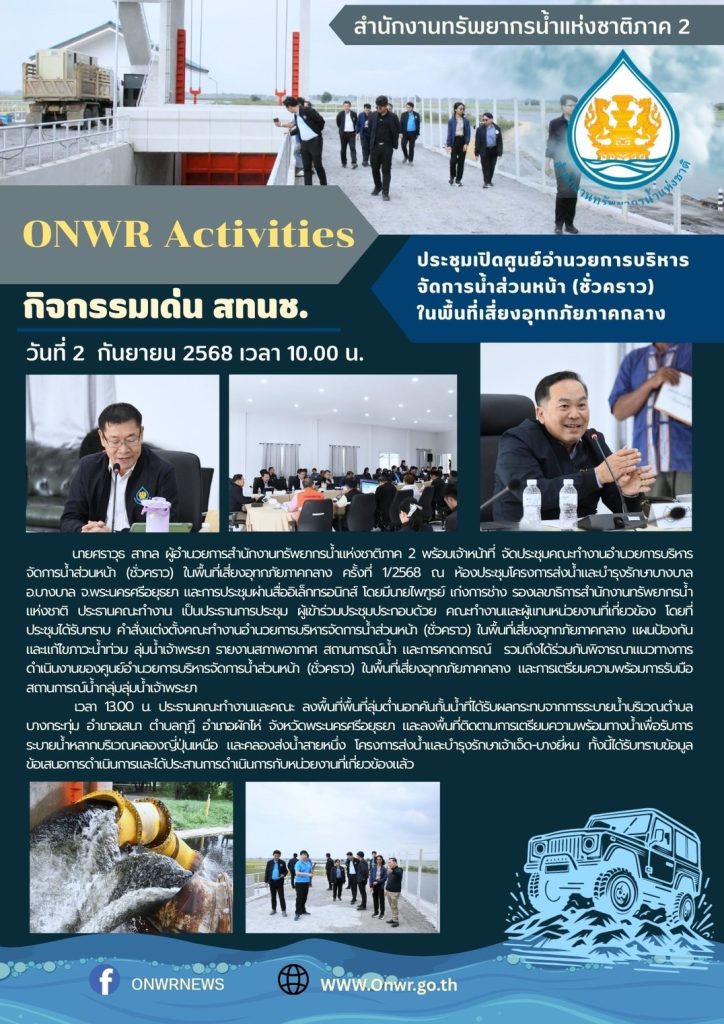 สทนช.2 จัดประชุมเปิดศูนย์อำนวยการบริหารจัดการน้ำส่วนหน้า (ชั่วคราว) ในพื้นที่เสี่ยงอุทกภัยภาคกลาง 3 กันยายน 2025 by ปวีณา ประกอบพันธ์