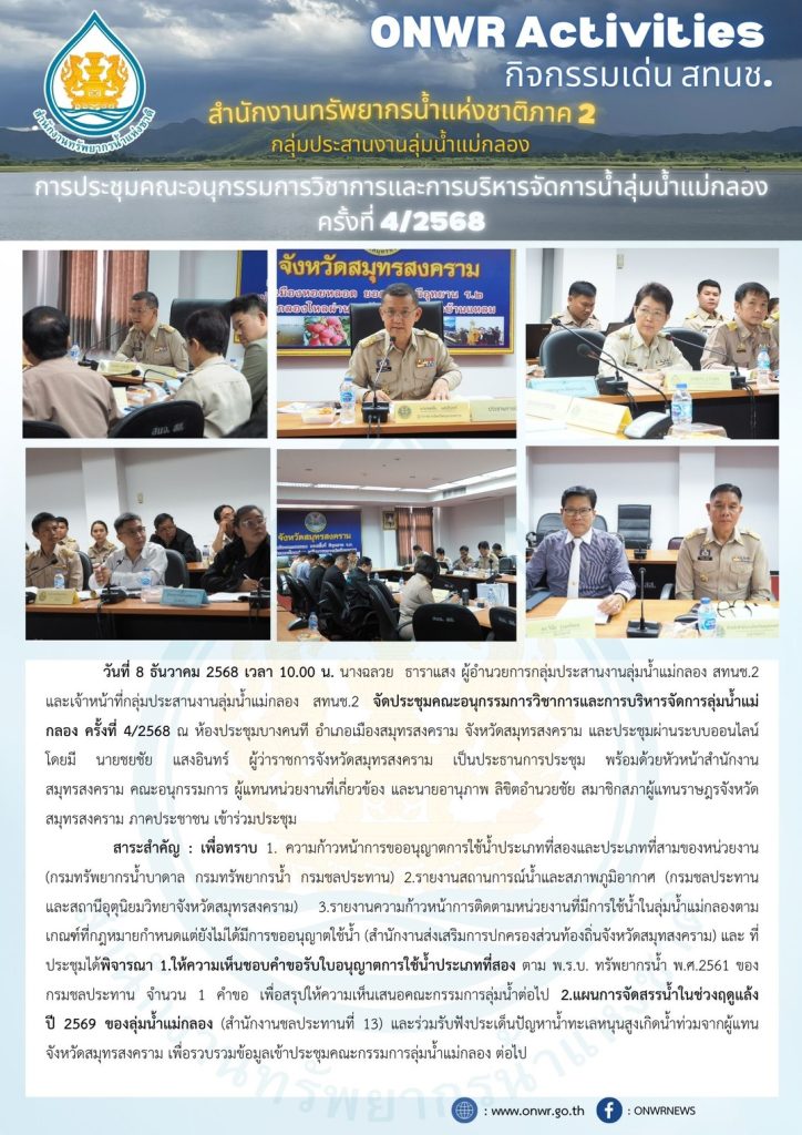 สทนช.2 เข้าร่วมการประชุมคณะอนุกรรมการวิชาการและการบริหารจัดการน้ำลุ่มน้ำแม่กลอง 9 ธันวาคม 2025 by ปวีณา ประกอบพันธ์